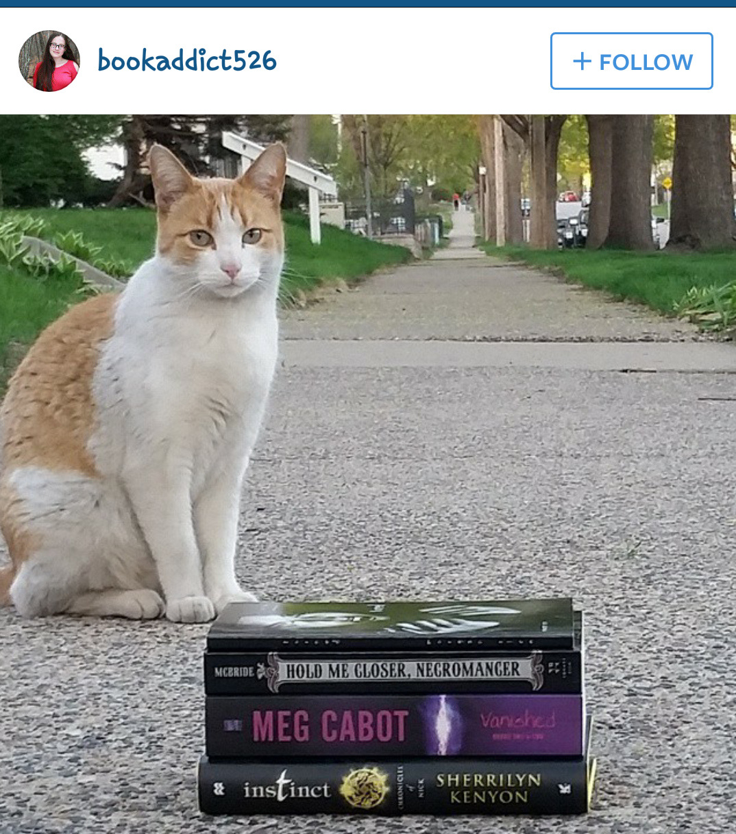 Thanks to @Bookaddict526 for tagging us in this photo of her Book Buddy. She says she was just trying to get a good book photo for her Insta when he stepped in.
